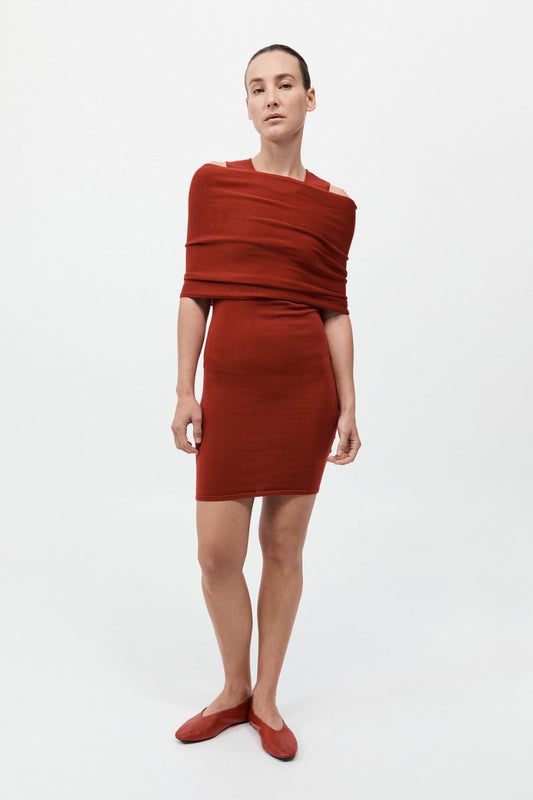 DETACHABLE LAYER KNIT DRESS-ROSSO